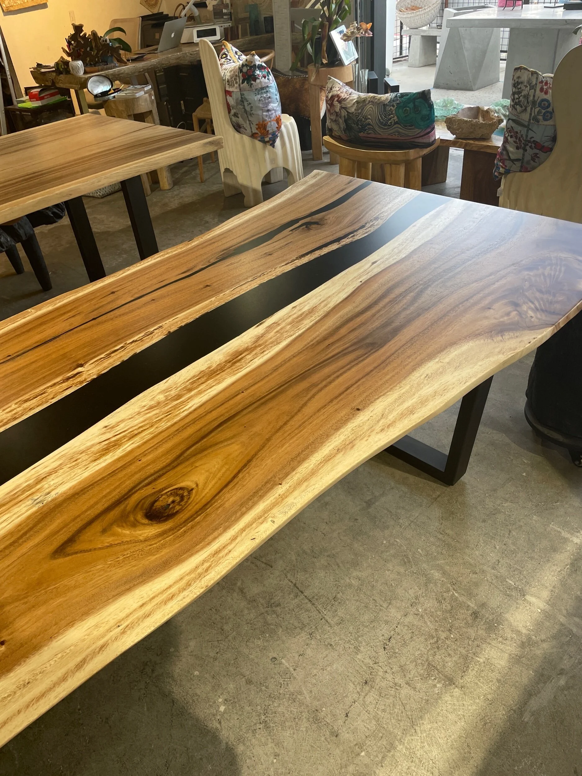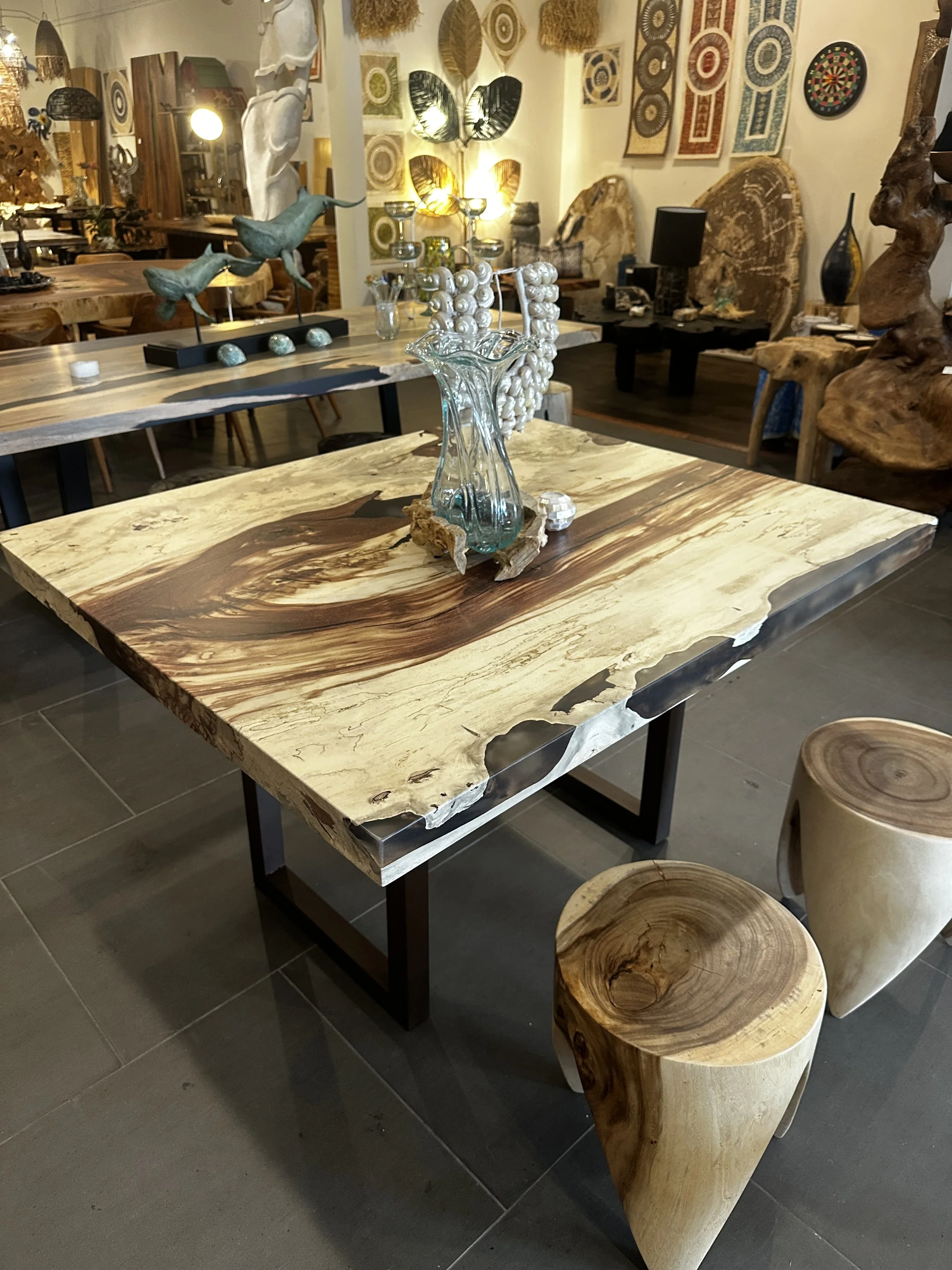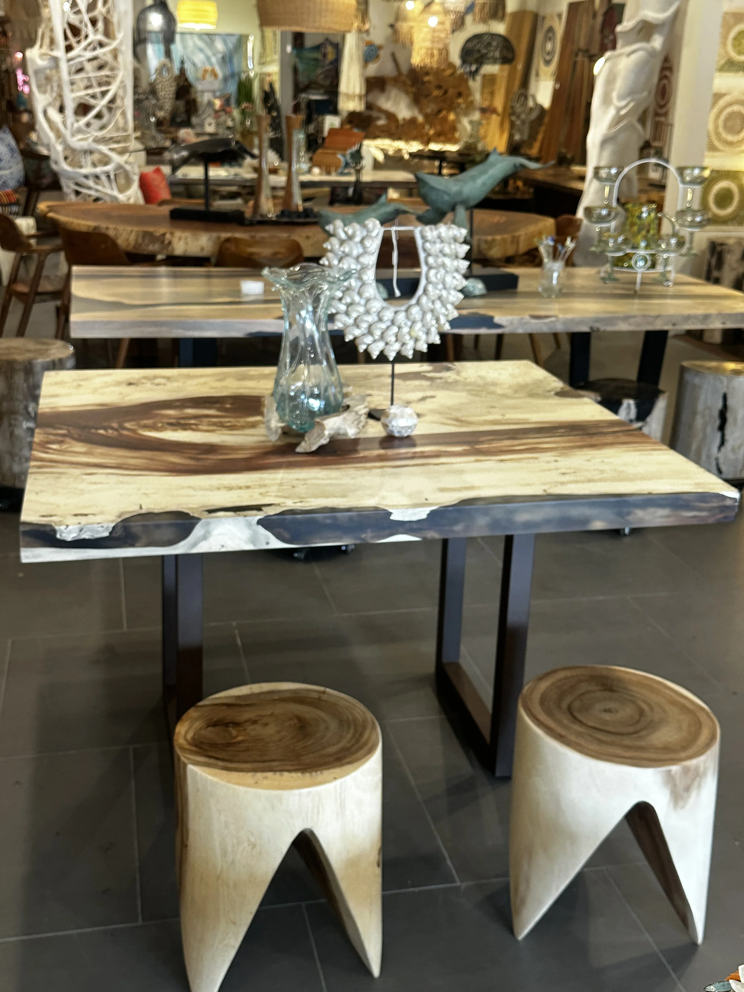Love Epoxy Resin Tables? So do We! With over 100 ready to ship pieces and 1000’s of possibilities for custom made Epoxy Resin pieces, We’re your premier location. Located in San Diego. Categories: All Dining Tables Resin Tables Tables Epoxy Resin Tables All | Dining Tables | Resin Tables | Tables | Burled Indian Lilac Encased in Crystal Clear Resin on a Fig Root Base $27,895.00 Purchase Added! 7' Tamarind Waterfall Edge Desk $8,995.00 Purchase Added! Pacific Ocean Blue Epoxy River Table $9,495.00 Purchase Added! WHITE LYCHEE TABLE WITH ICE BLUE RESIN $7,995.00 Purchase Added! Rare Rose Wood Console $3,895.00 Purchase Added! Custom 42" Round Tamarind Slab with Semi-transparent Epoxy Resin $4,995.00 Purchase Added! Custom 78" Tamarind Dining Table $8,595.00 Purchase Added! White Burled Coffee Table Encased in Clear Resin $3,995.00 Purchase Added! Square Tamarind Dining Table $4,995.00 Purchase Added! Custom Acacia with a Black Epoxy Resin River Nile $7,595.00 Purchase Added! Custom Black Walnut with Crystal Clear Epoxy Resin River $9,997.00 Purchase Added! Custom 3D Island Coffee Table/ Wall Art $7,995.00 Purchase Added! Custom Olive wood with Blue Green Epoxy Resin River $4,995.00 Purchase Added! Custom Acacia with a Pearlessence Epoxy Resin River Table $5,395.00 Purchase Added! Custom Crystalized Resin Table $11,995.00 Purchase Added! Custom 46” Round English Walnut $4,995.00 Purchase Added! Custom 59" Bleached Acacia "Blue Streak" $3,895.00 Purchase Added! Custom Crashing waves on Bleached Lychee Slab $2,995.00 Purchase Added!